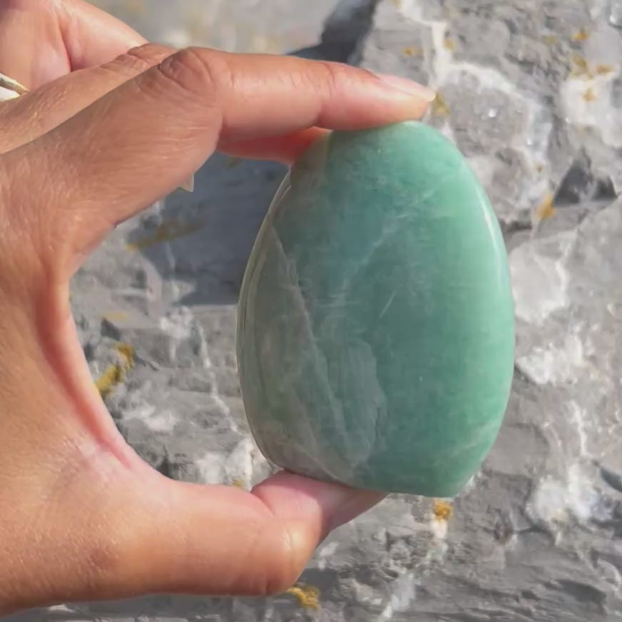This Amazonite freeform is a soothing companion for truth, courage, and emotional clarity. It calms the mind, eases worry, and gently supports healing from emotional trauma. An empowering stone for self-discovery and authentic expression.