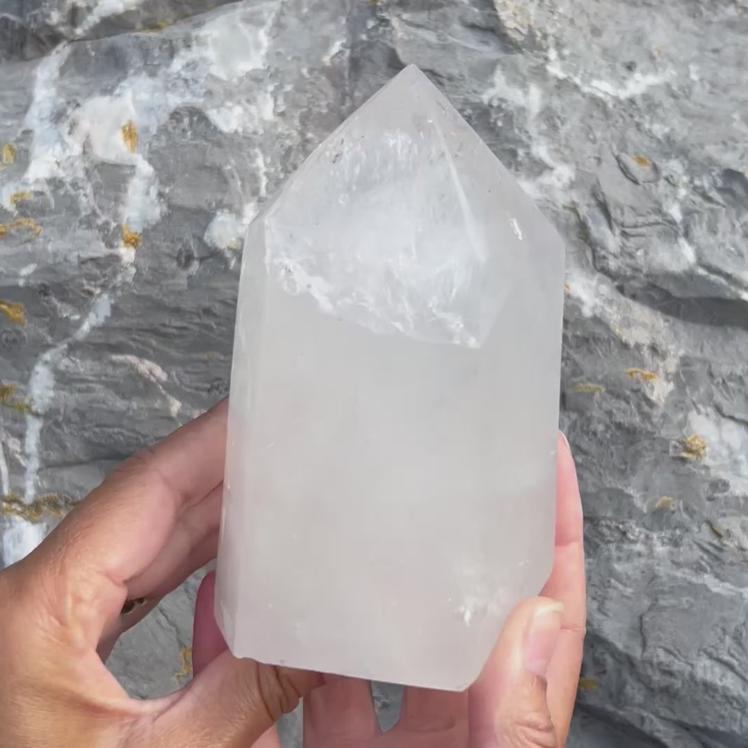 This Clear Quartz tower is the ultimate healing crystal and energy amplifier. It absorbs, stores, and balances energy while clearing energetic blockages. Perfect for boosting vitality, clarity, and overall wellbeing.