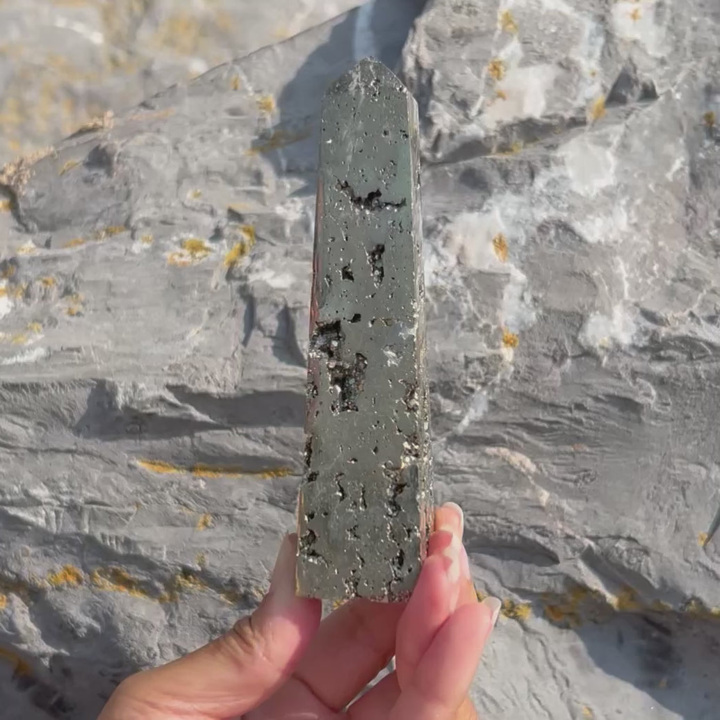 This striking Peruvian pyrite tower helps attract abundance, prosperity, and success. It offers powerful protection by deflecting negative energy and encouraging personal growth. Perfect for boosting vitality during stressful times or as a thoughtful gift for someone in recovery.